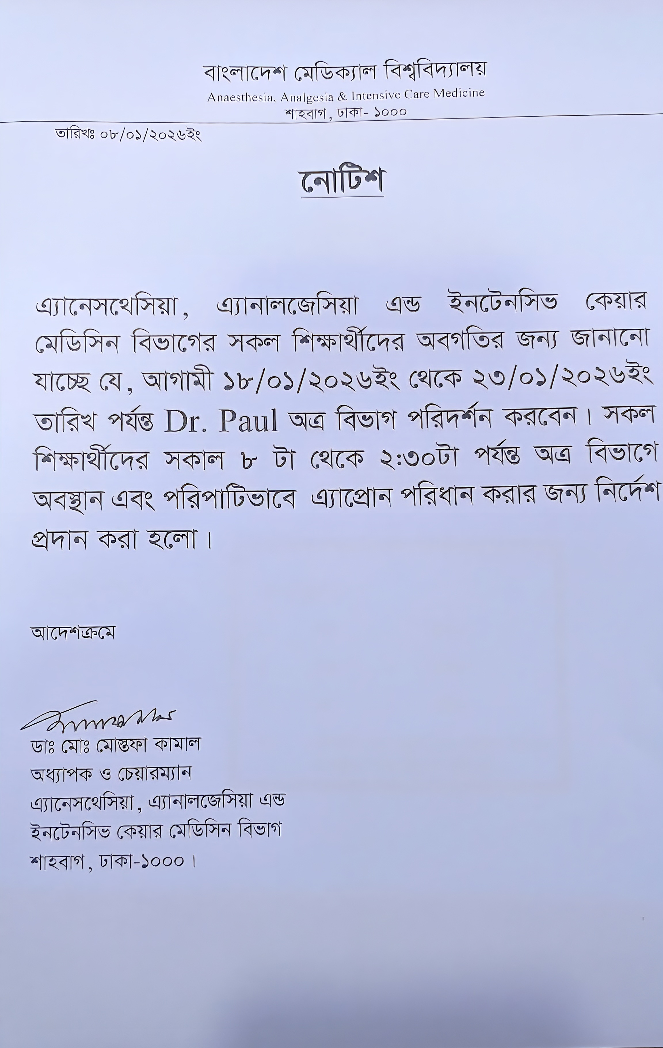 “Notice for Students Regarding Dr Paul's visit to the department”